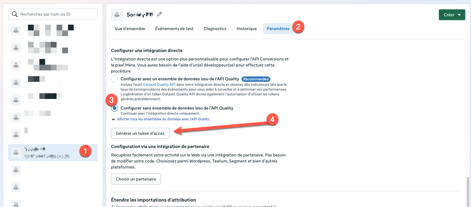 Comment récupérer l'ID du pixel et le jeton d'accès ?